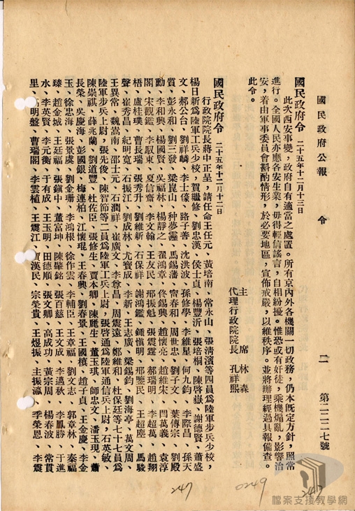 民國25年(1936)12月初,張學良察覺東北軍軍心不穩,赴洛陽謁見蔣中正,面陳西安不穩之勢。12月4日,蔣中正由洛陽赴西安,希望能化解西安諸將領不穩情緒。