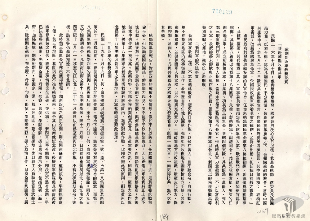 民國25年(1936)12月12日,西北剿匪副司令張學良與楊虎城,於西安發動「兵變」劫持蔣中正,此即「西安事變」。事件和平解決後,民國26年(1937)1月,裁撤西北剿匪總部,改變「攘外必先安內」的基本國策,對中共問題尋求政治解決。民國26年(1937)2月起,國民政府與中共談判,中共同意結束分離主義、暫緩階級鬥爭運動,國民政府則宣布承認中共合法,並同意將紅軍改編為國民革命軍第八路軍,稱之為「國共合作」。