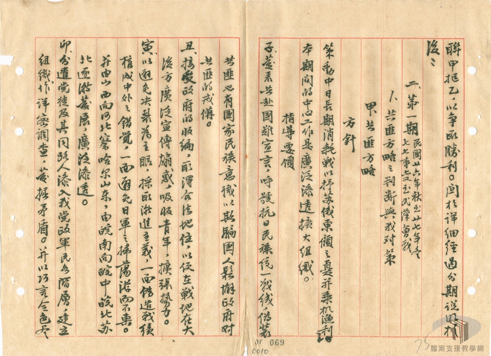民國35年(1946)1月初,在馬歇爾(George Catlett Marshall.Jr)的調停下,由馬歇爾、周恩來、張群組成軍事三人小組,研議停戰協定,國民政府發布一月停戰令。同時,為討論抗戰勝利後的重建問題,解決政治上的歧異,包容各界的意見,於民國35年(1946)1月10日正式於重慶召開政治協商會議,分別就政府組織、施政綱領、國民大會、憲法草案、軍事問題等進行討論。