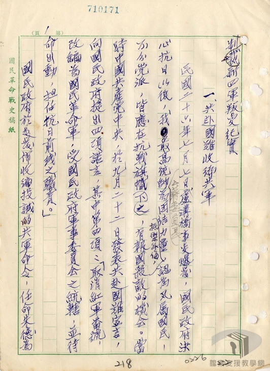 民國25年(1936)12月12日,西北剿匪副司令張學良與楊虎城,於西安發動「兵變」劫持蔣中正,此即「西安事變」。事件和平解決後,民國26年(1937)1月,裁撤西北剿匪總部,改變「攘外必先安內」的基本國策,對中共問題尋求政治解決。民國26年(1937)2月起,國民政府與中共談判,中共同意結束分離主義、暫緩階級鬥爭運動,國民政府則宣布承認中共合法,並同意將紅軍改編為國民革命軍第八路軍,稱之為「國共合作」。