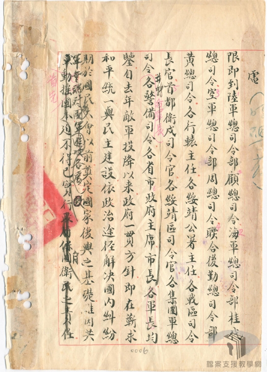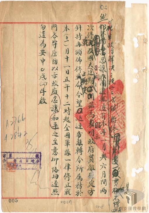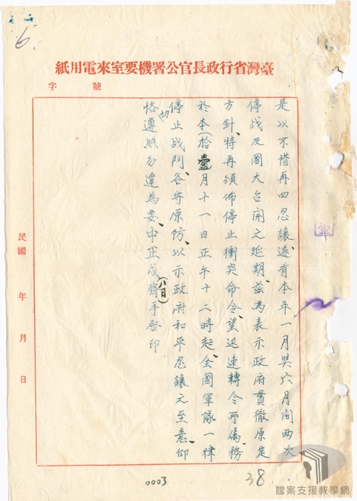 民國35年(1946)1月初,在馬歇爾(George Catlett Marshall.Jr)的調停下,由馬歇爾、周恩來、張群組成軍事三人小組,研議停戰協定,國民政府發布一月停戰令。同時,為討論抗戰勝利後的重建問題,解決政治上的歧異,包容各界的意見,於民國35年(1946)1月10日正式於重慶召開政治協商會議,分別就政府組織、施政綱領、國民大會、憲法草案、軍事問題等進行討論。