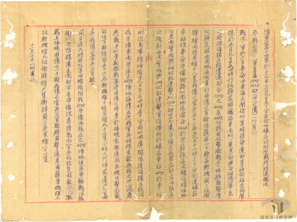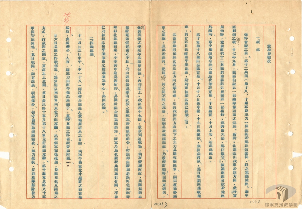 民國37年(1948)9月24日,共軍攻陷濟南之後,徐州成為阻擋共軍進逼南京的要點。10月22日,共軍攻陷鄭州,原本濟南、鄭州、徐州三足鼎立之勢,僅剩徐州支撐。因此,國軍集中兵力於徐州一帶,將共軍阻擋在淮河以北,成為國軍扭轉戰局的重要目標。但事與願違,國軍戰敗,國共局勢可謂大逆轉,也種下國共戰爭失敗的命運。