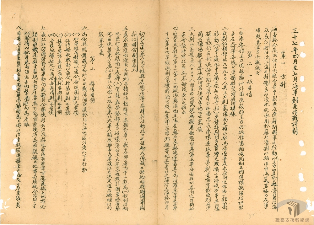 隨著中共的擴大叛亂,民國36年(1947)7月進入動員戡亂時期,而海軍的任務也更加重要,無論是獨立作戰、協同作戰或擔任巡弋與轉進任務,在國共戰爭中皆扮演重要角色。為讓國軍、尤其是海軍瞭解到海軍整體作戰計畫,海軍總司令部會視戰況來擬定不同時期的「海軍剿匪作戰計畫」,並說明計畫目標。海軍轄下重要單位也必須依據海軍總司令部的剿匪作戰計畫來擬定其作戰計畫,以期更全面、更周延地達到清剿共軍之總體目標。