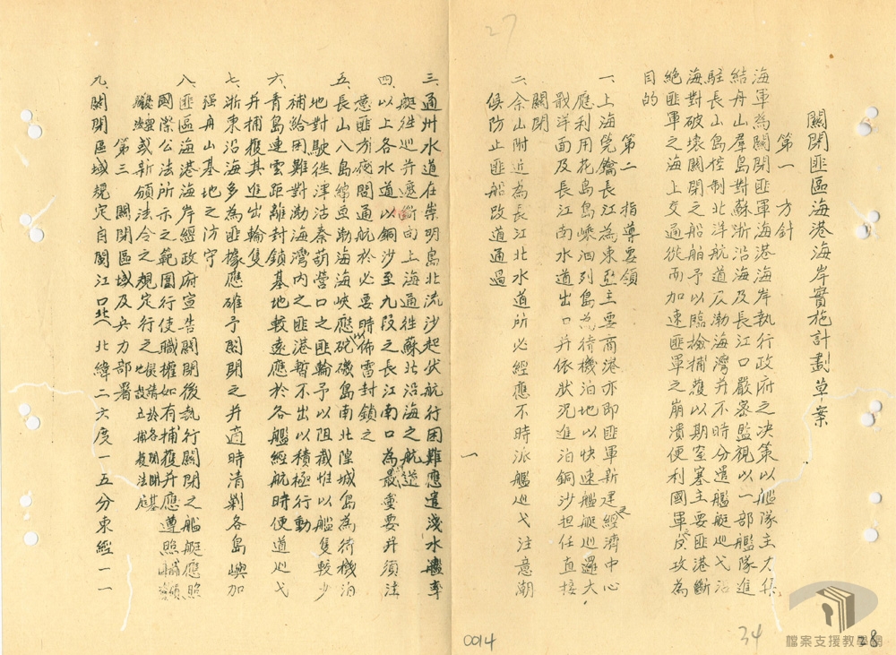 民國36年(1947)11月20日已擬定「蘇魯冀海岸分區關閉辦法」,僅規定開放連雲港、青島、威海衛、煙臺、龍口等港口。嗣因國軍剿共順利,至民國37年(1948)可控制的港口更多,但仍有些口岸因情勢尚未穩定而維持關閉狀況。民國38年(1949)4月底,長江天險被共軍突破後,戡亂局勢明顯不利國軍,5月底淞滬撤守後,6月26日,政府宣布實施關閉政策,海軍奉令執行關閉大陸沿海任務,以艦隊主力集結舟山群島,對蘇浙沿海及長江口嚴密監視,不時分遣艦艇巡弋沿海,以截捕中外籍資敵船隻,斷絕共軍海上交通。然隨著東南沿海港口的失陷,關閉區域至民國39年(1950)2月,已擴大有蘇浙沿海區(包括黃海區、東海區)、閩海區、粵海區。