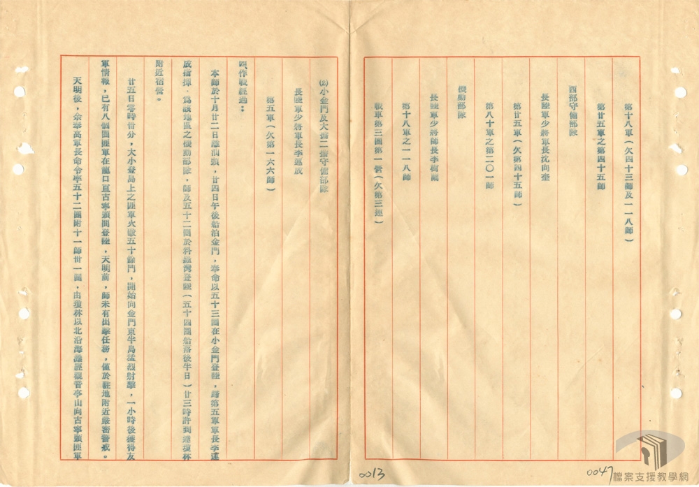 民國35年(1946),國民政府與中共在軍事調處的過程中衝突不斷,至民國36年(1947)7月,和談未能邁向和平,因應戰爭擴大,國民政府下令動員戡亂,進入全面開戰階段。從民國37年(1948)9月至民國38年(1949)1月間,遼瀋會戰、平津會戰、徐蚌會戰等三大會戰,國軍精銳盡失,大陸政局丕變。民國38年(1949)1月21日,蔣中正宣布下野,由副總統李宗仁代行總統職權。李宗仁設法與中共談判停戰,派出政府和平商談代表團,由張治中任首席代表;中共方面由周恩來任首席代表。4月1日起,於北平展開和談,然雙方和談破裂,共軍渡江。至38年(1949)底,國軍多已退出大陸,蔣中正為求復興基地臺灣之安全,建立反共前哨站,控制金門、廈門、舟山、大陳、海南等東南沿海島嶼,全力遏止共軍渡海襲臺,經金門、登步等戰役的勝利,穩定住臺灣海峽戰局。