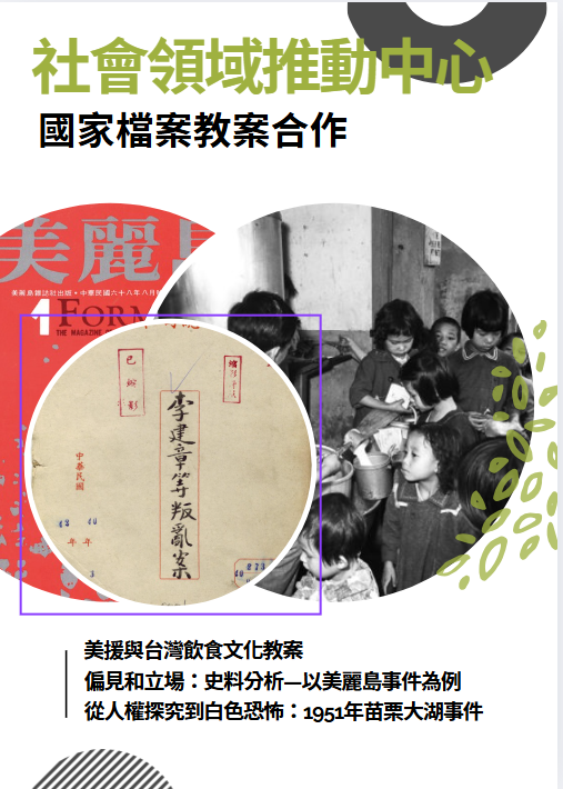 社會領域推動中心種子教師,利用本局的檔案所撰寫的素養導向教案,正式發表!教案內容包括威權統治時期的大湖事件、影響臺灣民主進程的美麗島事件、還有重要的戰後美援與臺灣美食文化的影響,教案已開放各界下載,歡迎各位老師多多利用,也勉勵教師多應用檔案融入教學活動。