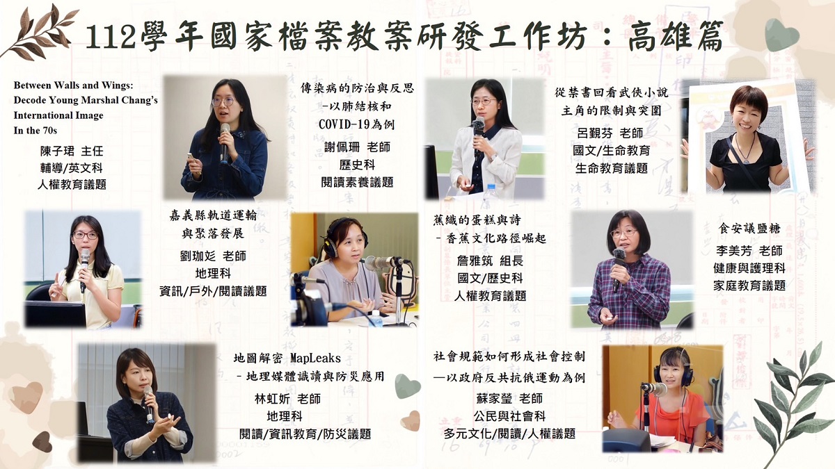 檔案局與高雄市政府教育局合作辦理「112學年度國家檔案教案研發工作坊:高雄篇」,首場為介紹國家檔案應用資源,並邀請教師將檔案融入課程教學設計之實作,活動舉行至113年7月,預計產出8份教案。