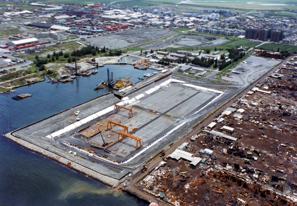 中興端引道設計複雜,工程相對浩大。為了有足夠空間進行引道工程,榮工處甚至先進行填海造陸工程。引道工程完工,第四貨櫃中心也開始運轉。