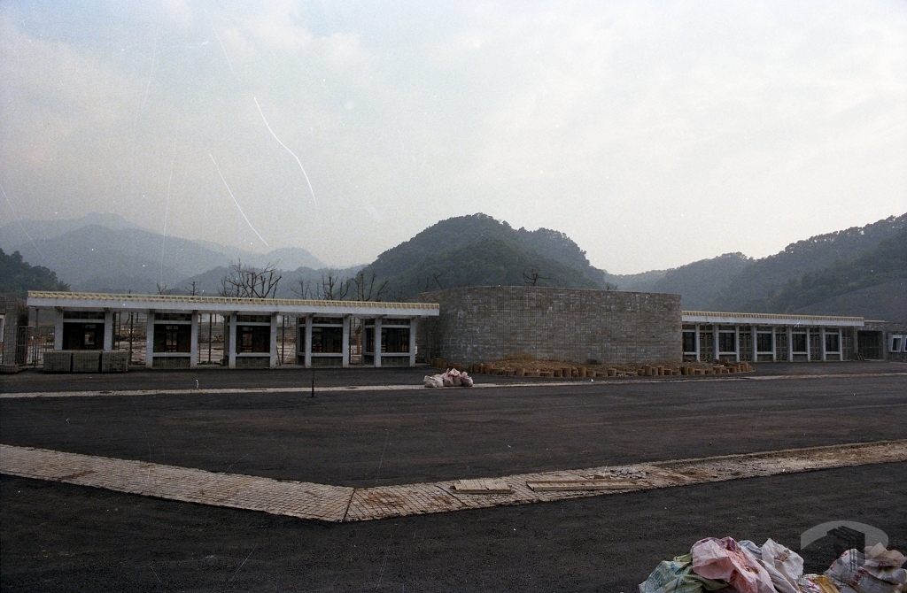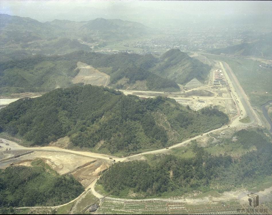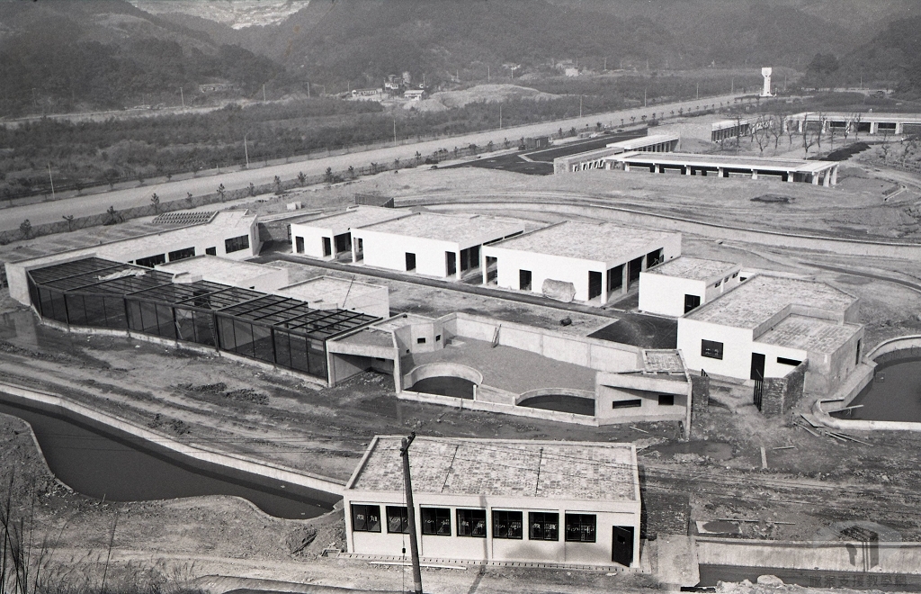 俯瞰動物園工程進度。1985年已可見入口廣場、臺灣動物區、兒童動物園區及教育中心的大致輪廓。