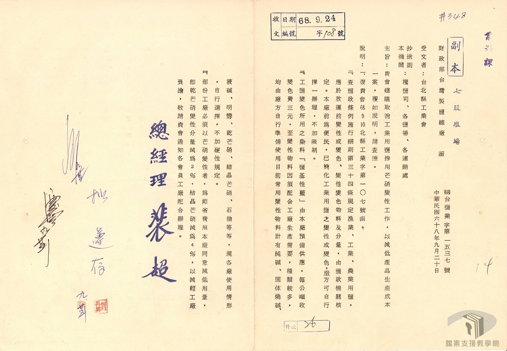 戰後政府接收臺灣,除持續復原、整理、更新,伴隨經濟與工業發展,新闢七股新鹽田、籌建通霄精鹽廠、引進法國機械化收鹽、投資澳洲鹽田,臺灣鹽業從傳統「天日曬鹽」進化到新式「離子交換膜」;從人工到機械化、從自產到進口、再從「國營」到「民營化」,長達338年的曬鹽歷史,為臺灣留下無數珍貴的鹽業史話。
