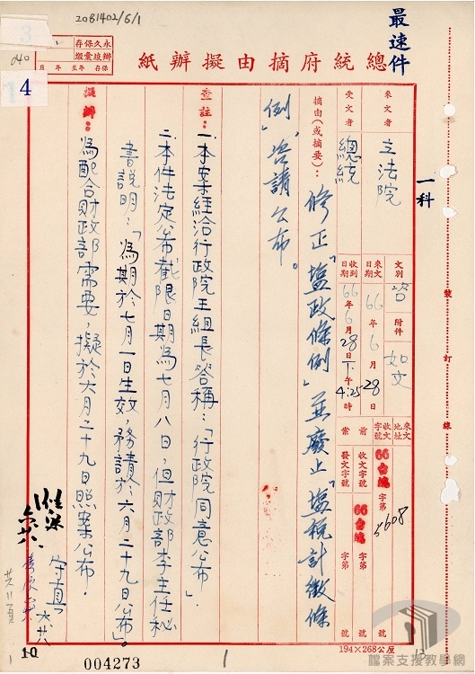 | 檔案管有機關 | 國家發展委員會檔案管理局 |