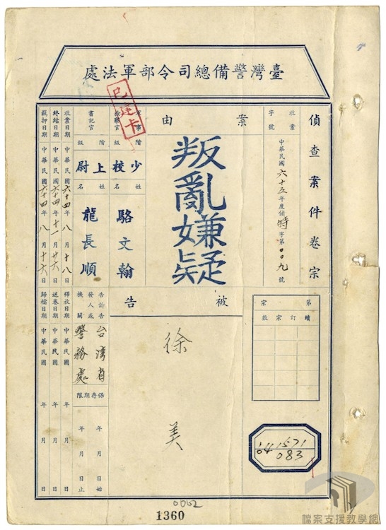 在「威權統治時期的女性政治受難者」主題下,我們依序規劃:以參加叛亂組織判刑的「政治犯」、因交遊、言行等受牽連的「政治犯」,呈現女性受難者為何成為「政治犯」或「思想犯」的因由;國家暴力的場域、獄中的生活處境,在檔案裡尋找女性從被逮捕、偵訊到服刑的過程等類別,蒐羅及整理相關國家檔案紀錄,以瞭解威權時期女性政治受難者們的生命軌跡。