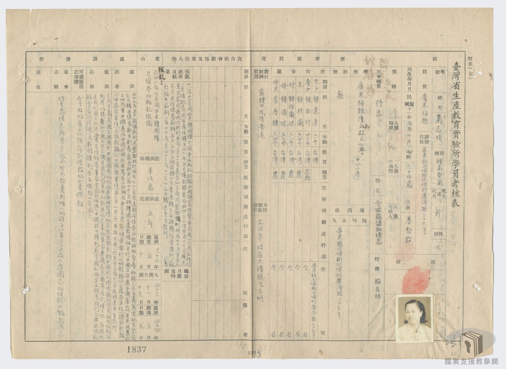 在「威權統治時期的女性政治受難者」主題下,我們依序規劃:以參加叛亂組織判刑的「政治犯」、因交遊、言行等受牽連的「政治犯」,呈現女性受難者為何成為「政治犯」或「思想犯」的因由;國家暴力的場域、獄中的生活處境,在檔案裡尋找女性從被逮捕、偵訊到服刑的過程等類別,蒐羅及整理相關國家檔案紀錄,以瞭解威權時期女性政治受難者們的生命軌跡。