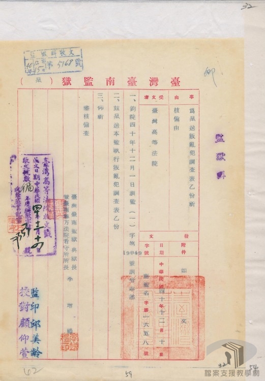 張常美憶述她在軍法處判決後,因為看守所人太多,關不下,被送去臺北監獄;在臺北監獄不知過了幾個月,又不夠關了,將中南部出身的政治犯送往臺南監獄。女性受難者對於關押地點偶有遷移的經驗能與檔案內容作一對照。