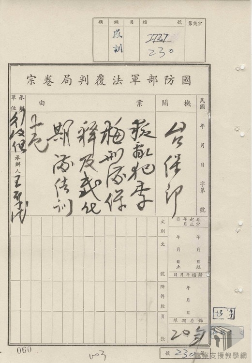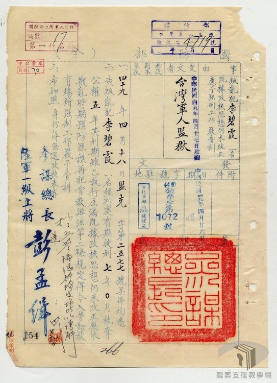 在「威權統治時期的女性政治受難者」主題下,我們依序規劃:以參加叛亂組織判刑的「政治犯」、因交遊、言行等受牽連的「政治犯」,呈現女性受難者為何成為「政治犯」或「思想犯」的因由;國家暴力的場域、獄中的生活處境,在檔案裡尋找女性從被逮捕、偵訊到服刑的過程等類別,蒐羅及整理相關國家檔案紀錄,以瞭解威權時期女性政治受難者們的生命軌跡。