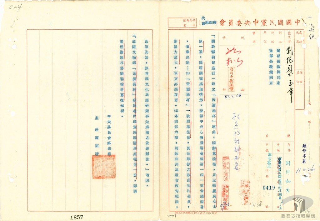 在「戒嚴時期臺灣的禁歌」主題項下,規劃次主題,其中:各種查禁律令、各種查禁手法,讓你我透過國家檔案掌握政府頒訂多項律令,以多種查禁手法查禁歌曲,另外,在查禁中共相關歌曲、不得影響民心士氣、查禁日本相關歌曲、查禁涉及情感歌曲等次主題,羅列多首被查禁的歌曲,透過這些紀錄讓我們瞭解戒嚴時期歌曲查禁背後的點點滴滴。
