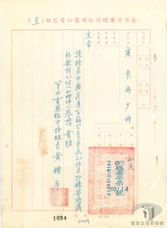 在「戒嚴時期臺灣的禁歌」主題項下,規劃次主題,其中:各種查禁律令、各種查禁手法,讓你我透過國家檔案掌握政府頒訂多項律令,以多種查禁手法查禁歌曲,另外,在查禁中共相關歌曲、不得影響民心士氣、查禁日本相關歌曲、查禁涉及情感歌曲等次主題,羅列多首被查禁的歌曲,透過這些紀錄讓我們瞭解戒嚴時期歌曲查禁背後的點點滴滴。