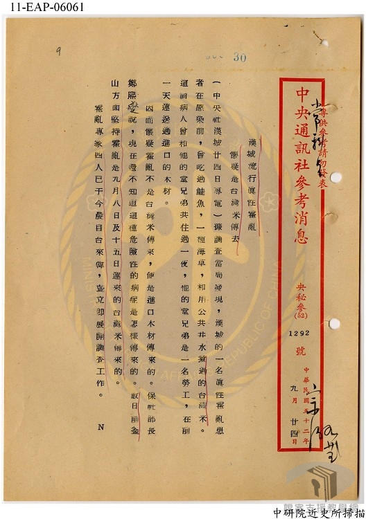 戰後初期臺灣因政治、經濟皆不穩定,公共衛生疏於管制,鼠疫、霍亂及天花再度現蹤,因傳染病而死亡的人數節節升高,迫使政府實施檢疫,以遏止疫情的蔓延。以瘧疾為例,當時全臺六百萬人中,就有一百二十萬人罹患瘧疾。1946年,在獲得洛克菲勒基金會(Rockefeller Foundation)的協助下,於潮州成立瘧疾研究中心(1948年更名為臺灣省瘧疾研究所),投入新藥物的試驗,也使用DDT 野外噴射、家屋噴射以及河川自動沖流法,進行病媒的撲滅,希望找出有效的防疫模式。1951年,又和世界衛生組織(WHO)簽訂瘧疾防治和監視計畫,持續提供藥物和殺蟲劑,投入防瘧實務,直至1965年終於根除瘧疾。