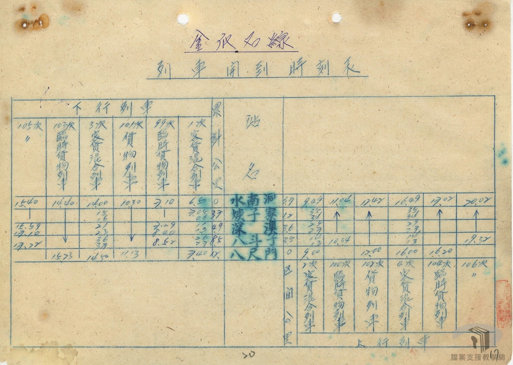 - 金瓜石線列車時刻表