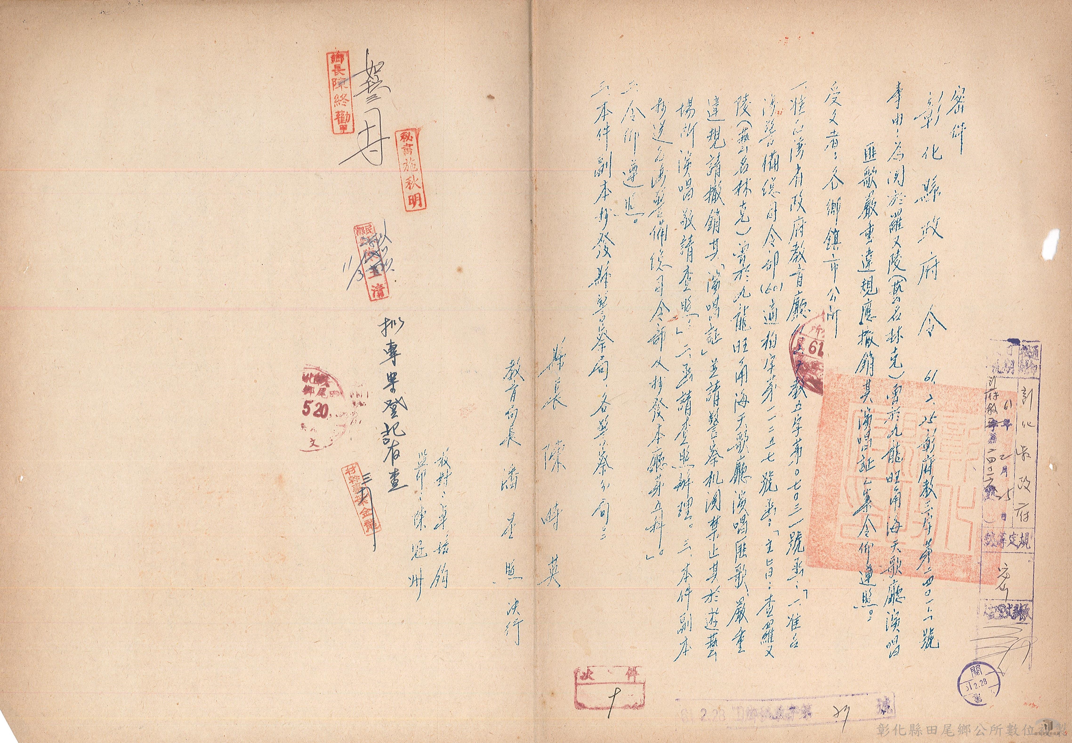 - 民政文卷(查禁藝人匪歌)