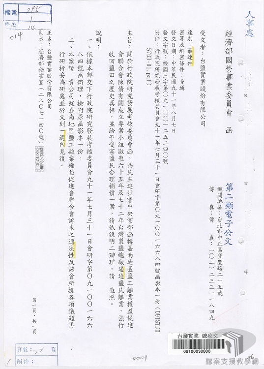 - 建議對鹽田實施三七五制度或放領鹽民承營